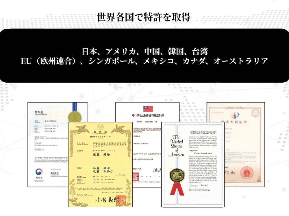 始まりは、単極の電場空間内の360°で水分子を振動させ続けることで食品の鮮度保持を可能にした特許技術。